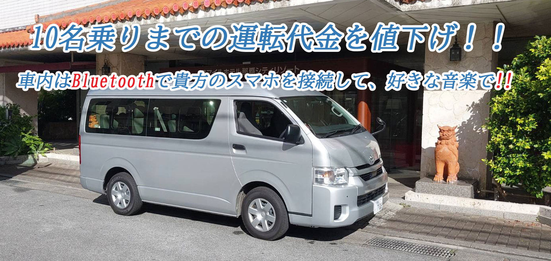 10名乗りまでの運転手付きレンタカーの運転代金をお手頃価格に値下げ!!
